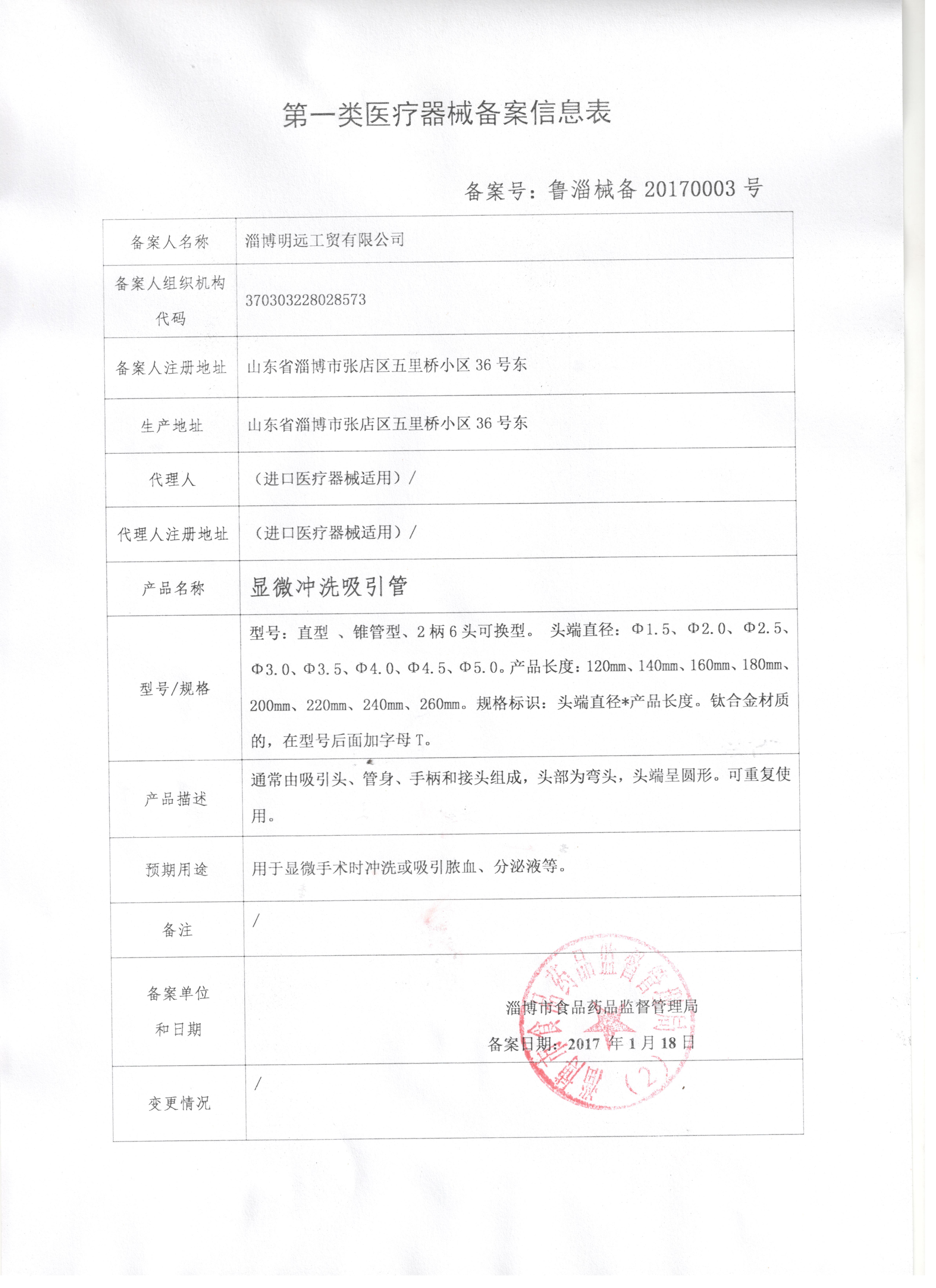 淄博明遠工貿有限公司 公司成立于2000年,是二類醫用穿刺器械專業生產廠家。公司以微創手術器械為發展方向,產品以各類特種穿刺針為主。我們以全方位的管理手段,嚴格地控制產品品質.歡迎您選用我公司產品并對我們的產品提出建設性的建議和意見.我們愿意成為您好的生意伙伴和知心朋友。